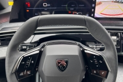 Kompaktowa kierownica, podgrzewana, obszyta skórą licową ze zintegrowanymi elementami sterującymi w kolorze czarnym błyszczącym, z dekorami w kolorze Stene Grey, z przeszyciami kwarcowymi