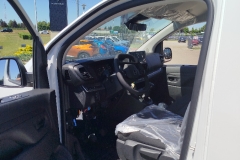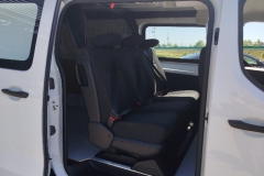 Fotel kierowcy z podłokietnikiem, dwumiejscowa kanapa pasażerów ze schowkiem pod siedziskiem, regulacja fotela kierowcy: wzdłużna, oparcia, wysokości, odcinka lędźwiowego